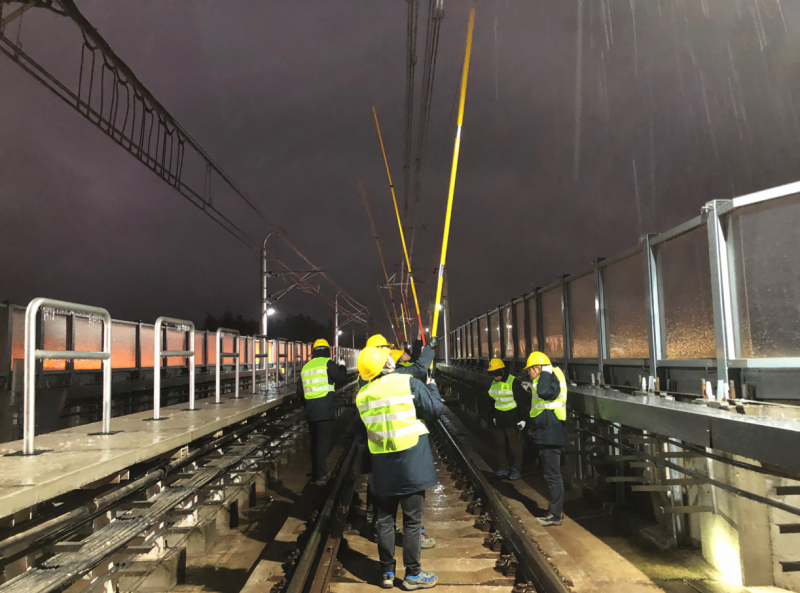 2月5日晚,全线网19个雨雪监测装置、高架区间2个风速检测仪的瞬时数据提示,西环线高架段雨雪监测点已出现结冰现象。按预案计划,西环线高架区段运营结束后便开始通宵热滑。因夜间室外温度过低、降水集中、风力大,接触网结冰现象愈发严重,电客车取电受到较大影响,首轮热滑除冰、工程车联挂电客车热滑效果均不佳,现场立即启动专业抢险人员开展高架区间人工除冰工作。