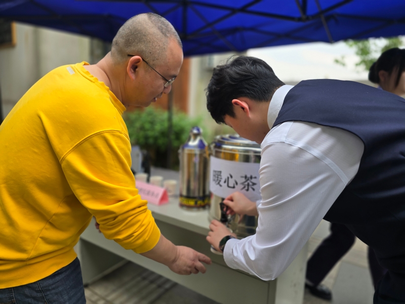 “谢谢,谢谢……”这是今天在省政府站2、3号口便民服务台前,工作人员听到最多的话。员工志愿者为过往乘客递上暖心茶,不断为有需要的乘客提供线路咨询、行李搬运等服务。