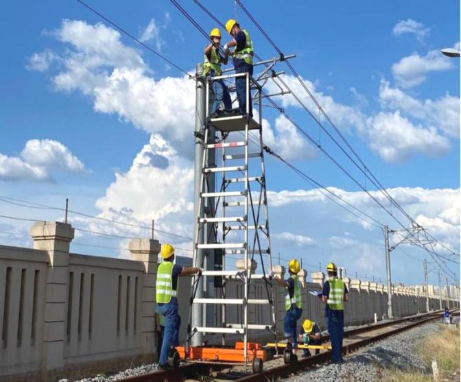 架设在高空的接触网线索在阳光直射下,表面温度可达60-70℃。高温天气下,接触网线索尤其容易发生膨胀变形、松动或是断裂等隐患。检修人员必须定期巡视、检修,以确保接触网设备正常运行。下午3点刚过,接触网八班在工班长钟远来的带领下,开始了洋湖垸车辆段的接触网检修作业。他们不仅要对柔性接触网吊弦位置及接触网平面高差进行调整,还要完成分段绝缘器的数据测量。即便戴着手套,大家还是能感受到接触网设备的高温,工班成员的脸颊也很快被晒得通红。“大家注意身体情况,及时补充水分。”钟远来不时叮嘱工班成员。4个小时的作业,工班成员共巡检了6.5公里的接触网设备,调整分段绝缘器4组、吊弦20组,处理隔开隐患问题3处,为高温下的供电安全提供了有力保障。