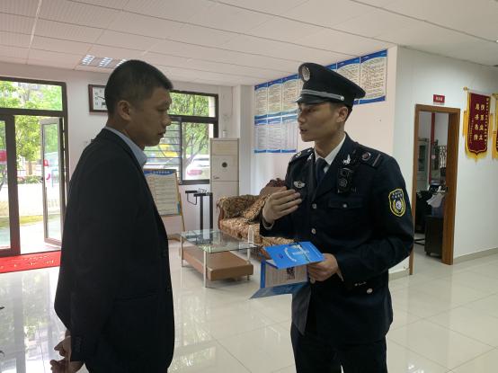 执法人员进社区进行地铁保护区安全宣传