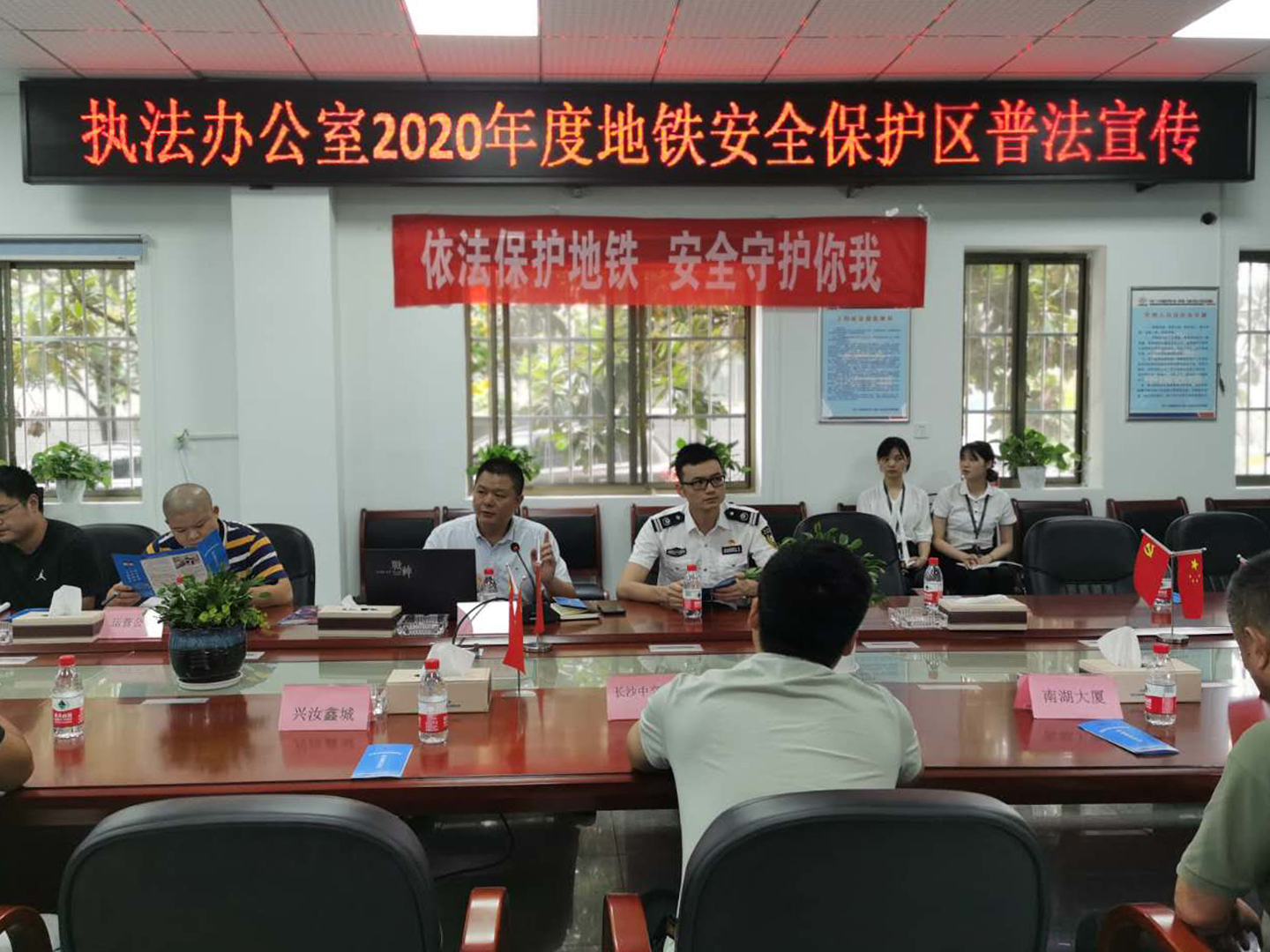 为深入贯彻习近平总书记系列重要讲话精神和对法治宣传教育工作重要指示,7月21日下午,执法办公室在中铁二十五局芙蓉路快速化改造项目部开展2020年度地铁安全保护区普法宣传活动。1号线执勤中队、执法管理科、运营公司安监部、兴汝金城项目、长沙中交国际项目、芙蓉路快速化改造项目、恒大珺璟府项目、湘雅路过江隧道项目、南湖大厦项目、芙蓉路快速化改造涉铁段等项目代表参加活动。执法办公室主任田良燕出席活动,并主讲此次普法教育课。