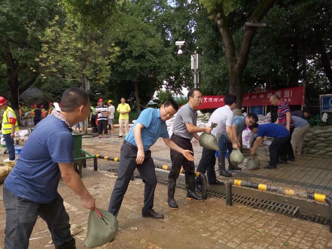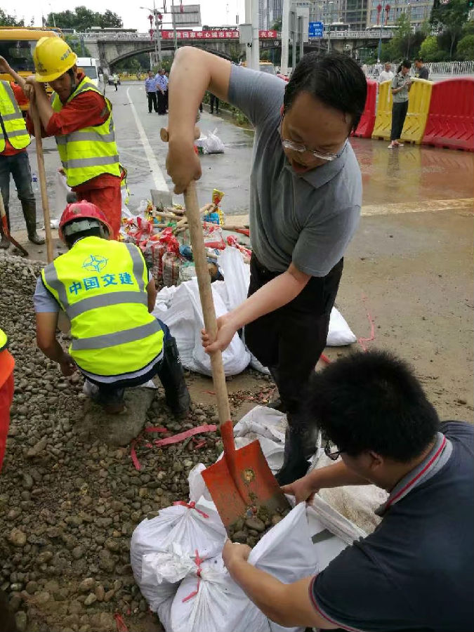 截止7月3日早8时,湘江中路水位达39.42米,超保证水位1.05米,超警戒水位3.42米,汛情形势严峻!建设管理部在集团公司常务副总经理旷庆华的指挥下,迅速转移阵地,奔赴湘江中路,开始新一轮应急救援工作。