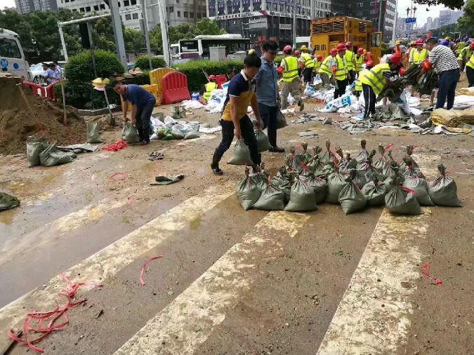 自全市启动防汛III级应急响应,面对汛情,建设管理部毫不犹豫,积极投奔到防汛应急救援前线。时针慢慢转至下午,经过数小时的紧张救援工作,建设管理部员工与志愿者共同完成了湘江中路站数千个备用砂袋,完成了围堰加固,阻挡湘江水倒涌交通要道。