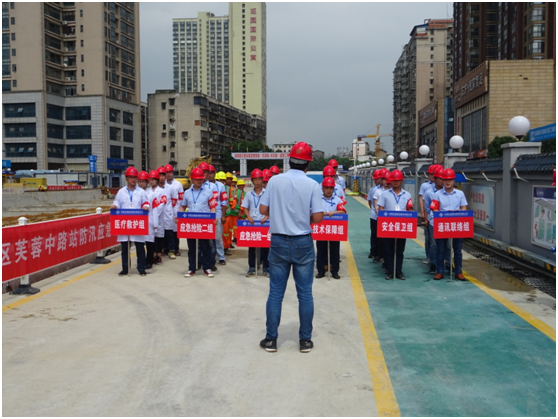 随着主汛期的到来,为进一步提高施工作业人员的防汛意识,有效应对汛期可能发生的各类突发事件,提高项目在汛期的安全保障能力,使项目能迅速、高效、有序地组织抢险工作。6月16日,长沙地铁6号线芙蓉中路站开展“防汛应急演练”。