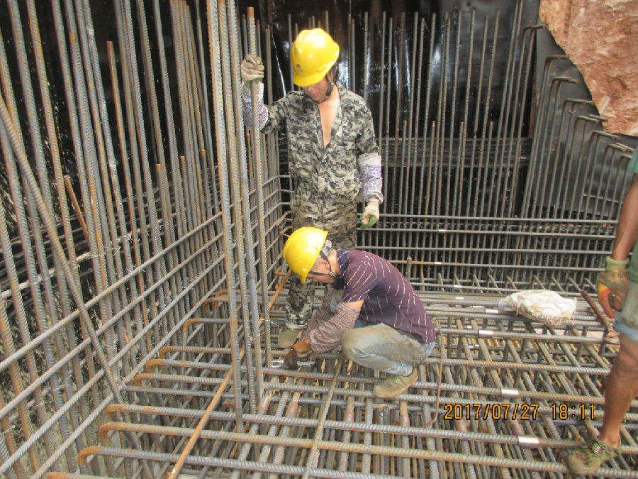 在4号线二标段水电十一局承建的树木岭车站基坑内,随处可见工人们劳作的身影。虽然夏日的阳光是那么的毒辣,但是工人们却没有退缩。在做好了各种防暑措施之后,工人们正在有条不紊的进行钢筋绑扎和混凝土浇筑作业。衣服虽然湿了又干,干了又湿,但却没有人懈怠偷懒,在工作中始终坚持“安全为主,质量第一”的理念,确保地铁“百年大计”工程。