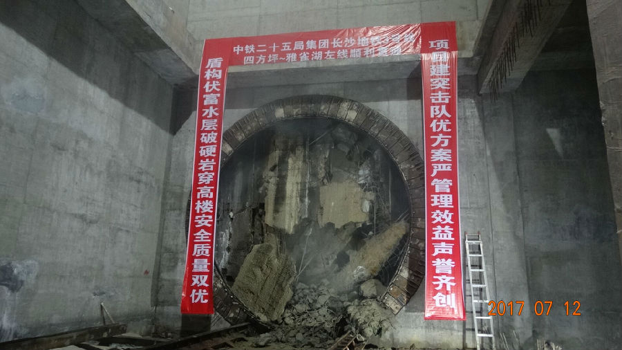 7月12日晚22时55分,随着巨大刀盘破洞而出,由中铁二十五局承建的长沙地铁3号线四方坪~雅雀湖区间左线“开拓号”盾构机顺利出洞,完成其职业生涯中的首段成型隧道。