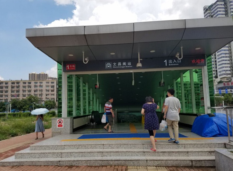 文昌阁站为长沙市轨道交通6号线中段工程的第15个车站,也是1号线与6号线的换乘站,位于黄兴北路与湘雅路交叉路口东侧,沿湘雅路呈东西走向设置,车站全长315.05m、宽30.5m,设置4个出入口和2座风亭,站位所在地道路狭窄、周边商铺密集、人流车流复杂,车站施工牵涉的房屋拆迁及管线迁改众多,施工组织极其复杂。