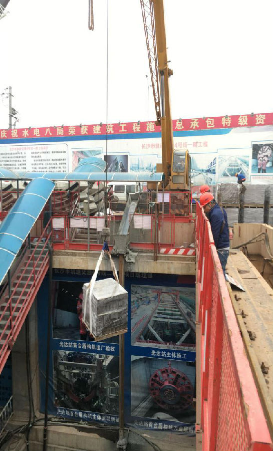 长沙地铁4号线机电6标段由湖南工业设备安装有限公司承建。2017年12月底,4号线一期工程光达站、长沙火车南站相继完成土建工程移交。面对施工现场条件复杂、工期紧张、无运输通道等诸多不利因素,长沙地铁4号线机电6标段不等不靠、找缝插针,积极创造施工条件,与运营公司、高铁综治办对接物资运输通道,与铺轨单位达成轨道车租用协议,并以光达站盾构井为进料口,使用轨道车完成各项物料的现场转运,确保了火车南站机电施工顺利进场。