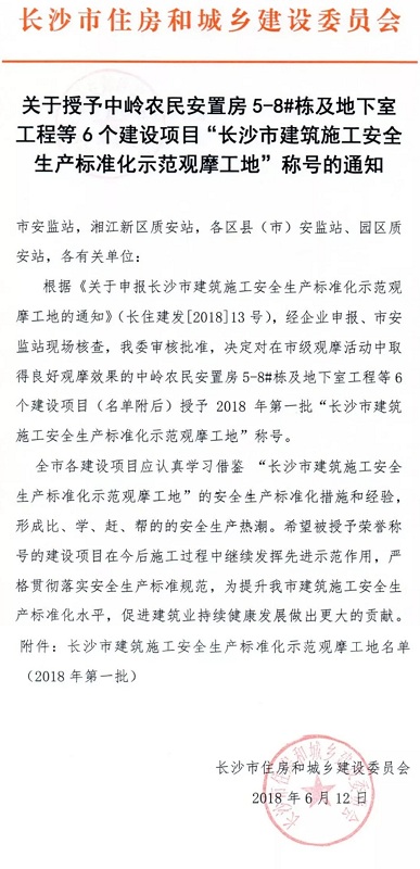长沙地铁6号线将以本次获奖为契机,在今后施工中继续发挥先进示范作用,严格贯彻落实安全生产标准化规范,继续提升长沙市建筑施工安全生产标准化水平,为促进建筑业持续健康发展做出更大的贡献。