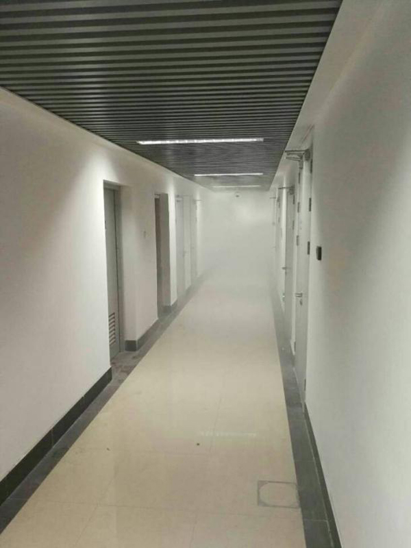 在冷烟测试现场,工作人员关闭所有设备房的防火门后,在设备区走廊内放烟,消防报警系统随即启动,提示人员撤离。待烟雾浓度降低后,检测人员进入房间测试设备房内的烟雾浓度,以确认防火封堵是否合格。