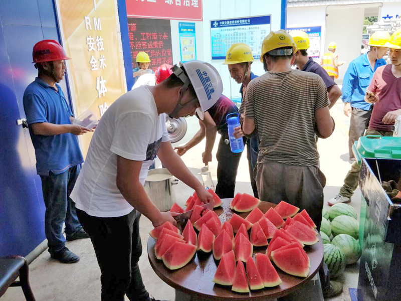 各工区为一线施工人员送去西瓜、绿豆、凉茶以及十滴水、仁丹、清凉油等降温防暑物品。同时,工区相关负责人为大家讲解施工防暑降温注意事项,并叮嘱施工人员做好高温防护措施,要严格遵照各级文件精神,合理调整工作时间与作息时间,保障一线生产人员安全。