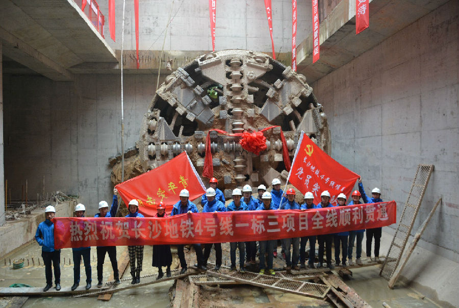 1月16日,随着“争先号”NO.12盾构机破土而出,长沙轨道交通4号线一期工程福元大桥西站~茶子山站区间双线顺利贯通。