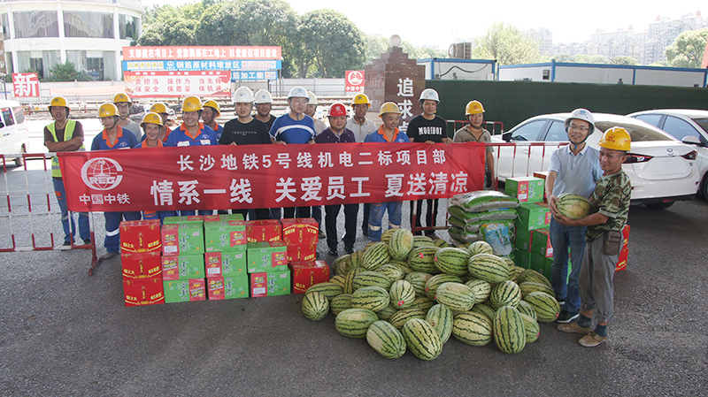 长沙气温节节攀升,奋战在施工一线的建设者依然坚守在工作岗位,接受着烈日“烤”验。为此,近日地铁5号线开展了“情系一线 关爱员工”活动。