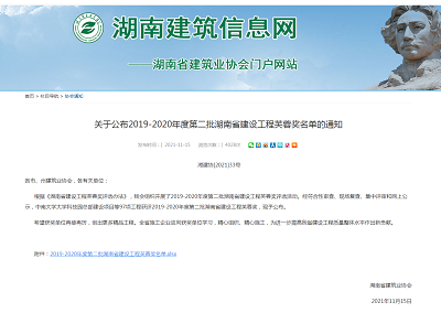 日前,从湖南省建筑业协会传来喜讯,长沙地铁5号线一期工程荣获湖南省建设工程芙蓉奖。