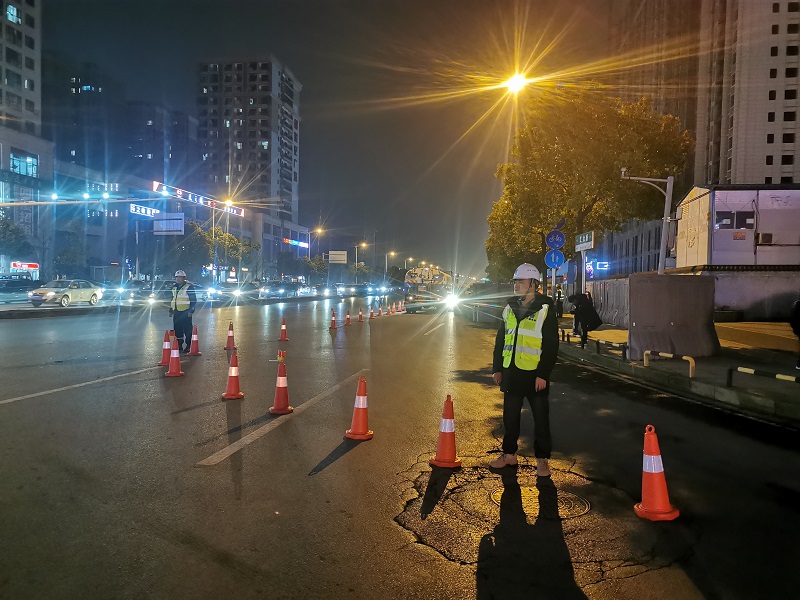 当天夜间,建设指挥部组织参建单位加大人员及设备投入,协调交警及管线等单位,加强现场交通安全疏导,经过数个小时的连夜奋战,顺利完成东北角打围施工,为后续雨水管线迁改及主体结构施工奠定了基础。