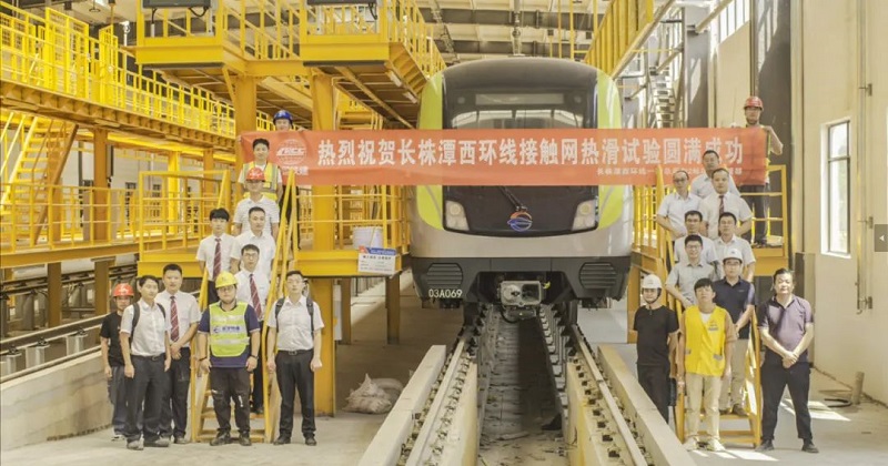 “热滑”试验是确认车辆与接触网系统之间的配合关系,用以检验供电系统、接触网系统、车辆系统运行情况,是实现“车通”的关键步骤。此次热滑试验共历时3天,覆盖西环线一期工程全线及九华车辆基地。经试验,列车在低速、中速、高速的热滑过程中,受电弓与接触网运行状态良好,各项检测数据正常、性能良好,电客车运行平稳,符合设计和相关标准规范要求,标志着热滑试验圆满完成。