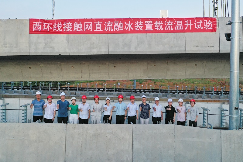 8月9日,公司组织西环线建设公司、中铁电气化勘测设计研究院有限公司、中铁建电气化局、长沙中大建设监理有限公司、中铁十一局、中铁第四勘察设计院集团有限公司、北京城建设计发展集团股份有限公司、中铁上海设计院集团有限公司与湖南防灾科技有限公司,在长株潭西环线船形山站附近露天高架区段,开展城市轨道交通接触网直流融冰装置温升试验,试验测试正常,取得圆满成功。