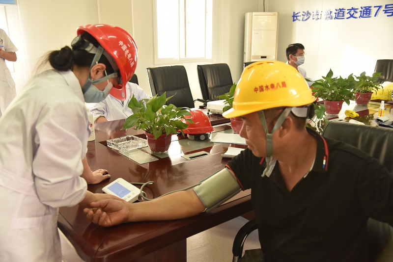 为增强项目部农民工的健康意识、防病意识和防病能力,提升应急救护技能,10月18日下午,7号线项目建设指挥部、7号线2标水电八局联合长沙融城医院,在汽车南站现场开展“湘爱湘融”关爱农民工义诊活动。