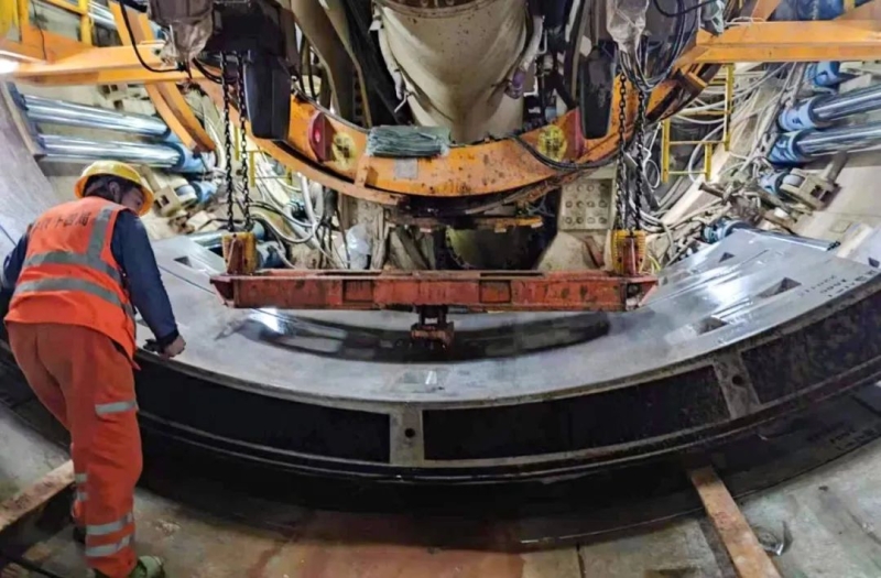 长沙磁浮东延线接入T3航站楼工程磁浮T2站-磁浮T3站区间右线,全长2.822公里,为长沙轨道交通单线最长盾构区间,于2021年11月20日在磁浮T2站始发,2022年12月26日磁浮T3站到达。区间盾构克服了新冠疫情、盾构渣土外运受限影响以及长距离盾构掘进时渣土、管片水平运输时间限制,实现各道工序紧密衔接,截至区间右线贯通有效掘进天数仅为293天,达到平均日掘进9.6米优异成绩。