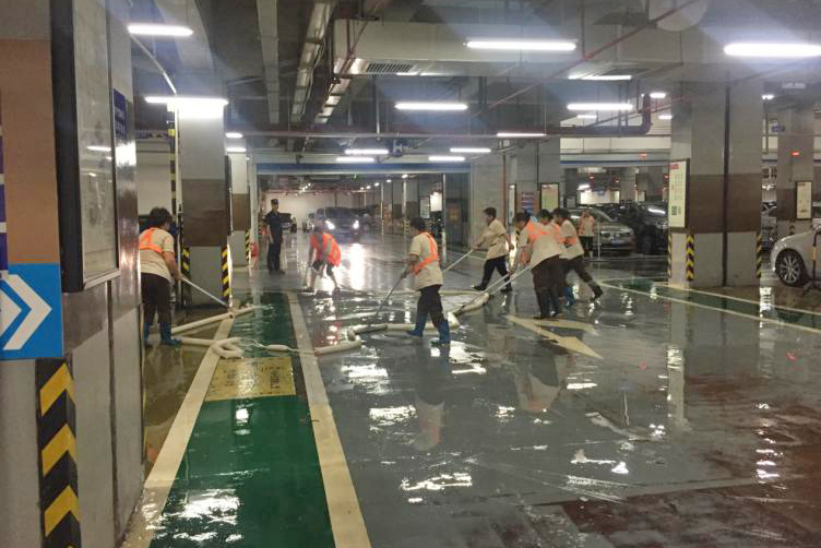 7月12日上午,暴雨降临,火车南站东、西广场均出现汛情,西广场地下车库、南北车辆入口和的士通道、东广场安全通道口等处均发生渗水、冒水。公司党委委员、常务副总经理旷庆华,党委委员、工会主席谢宇红带队赶赴现场指挥防汛工作,东西广场管理、保安和保洁人员150余人,利用增高防水墙、铺设引水渠、拉水带赶水、机械吸水、人工刮水等方式对各个区域的积水进行一一清理。经过大家近两个半小时的全力奋战,成功排除内涝,未造成任何经济损失和负面影响,未发生一起安全事故,为广大旅客出行提供了安全保障。