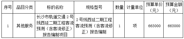 1、项目名称:长沙市轨道交通2号线西延二期工程客流预测(含客流修正)报告编制项目