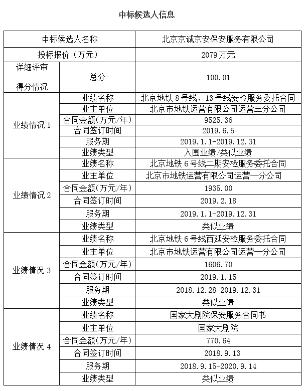 中标候选人:北京京诚京安保安服务有限公司