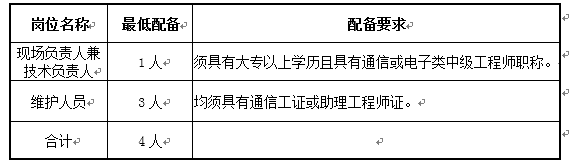 11、现场服务人员最低配备要求表