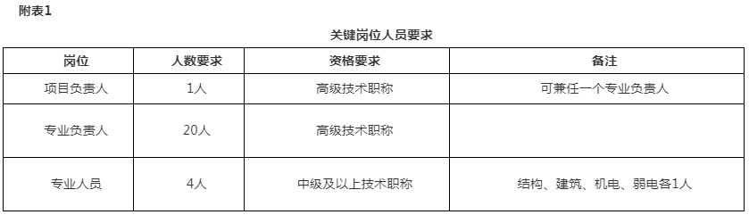 4、拟任本项目的关键岗位人员必须是相应投标单位的在职人员。疫情期间及生产恢复期间,不核查有关人员养老保险,具体关键岗位人员要求详见附表1。