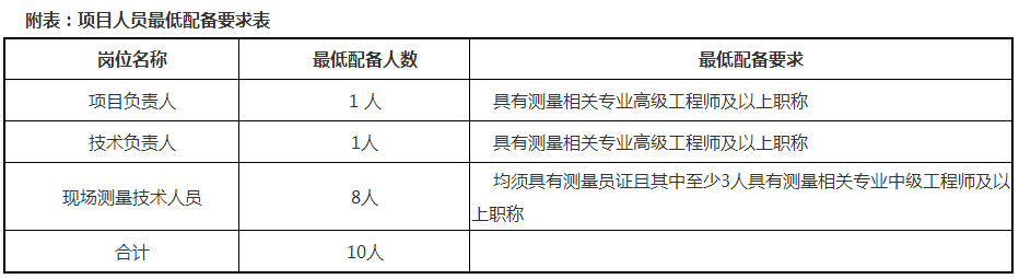 3.5投标人拟投入本项目的项目服务人员须满足最低配备要求,详见招标公告附表《项目人员最低配备要求表》。
