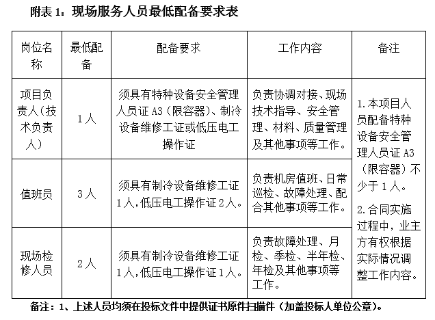 2.6招标范围:对集团大楼螺杆式冷水机组、溴化锂吸收式冷水机组、空调水泵、冷却塔、风机盘管、风管、空调风柜、水系统管路及其附属设备、风系统管路及其附属设备、空调设备配电柜、控制柜及附属设备、一体式空调器(电梯空调)、空气净化机的日常巡检、维护保养、故障处理、临时任务、仪器仪表检测、水质检测、风管清洗、配合工作等。
