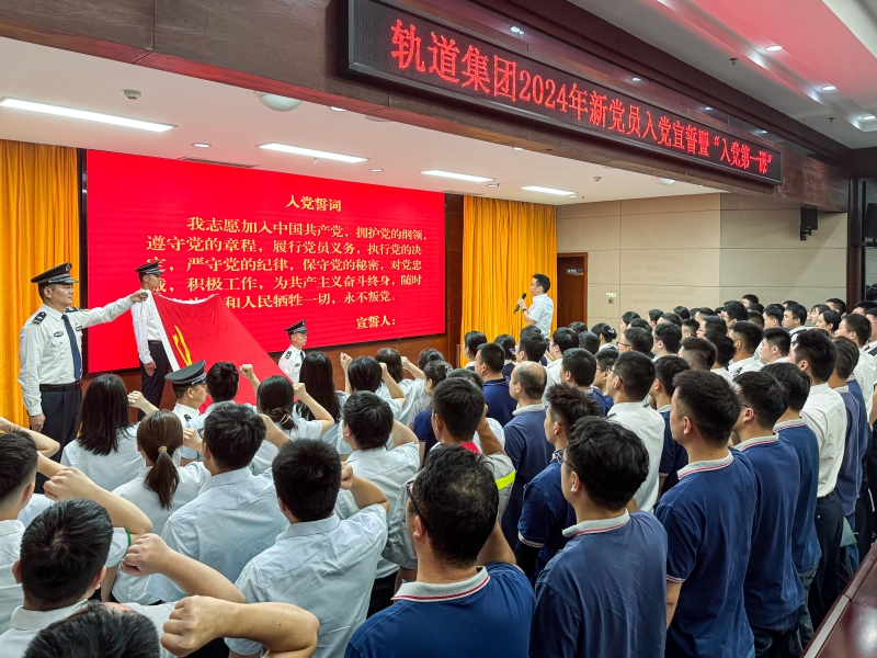 “我志愿加入中国共产党,拥护党的纲领······随时准备为党和人民牺牲一切,永不叛党。”为切实增强新发展党员的组织归属感和身份认同感,强化党员意识、坚定理想信念,充分发挥先锋模范作用,7月30日,长沙轨道组织新发展的80名党员齐聚一堂,向党旗庄严宣誓。公司党委副书记、工会主席尹双红领誓并讲授专题党课。