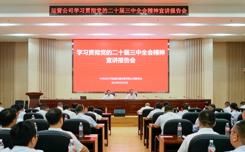 9月26日下午,长沙市轨道交通运营有限公司举行学习贯彻党的二十届三中全会精神宣讲报告会。市国资系统宣讲团成员,长沙银行党委书记、董事长赵小中应邀为运营公司党员干部职工作专题宣讲。集团党委书记、董事长罗国强主持宣讲报告会,集团党委委员、副总经理彭章硕,长沙银行党建办公室相关负责人,集团党群工作部相关负责人,运营公司全体班子成员、各基层党组织书记等参加会议。