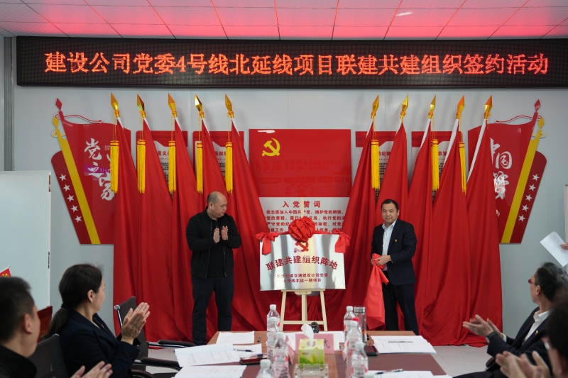 活动中,建设公司各党支部书记、4号线北延一期工程参建单位党组织负责人,共同签订联建共建协议书。与会领导为项目联建共建组织揭牌、授旗和赠书。项目联建共建组织还开展了集中理论学习、共同参观了湖南雷锋纪念馆。