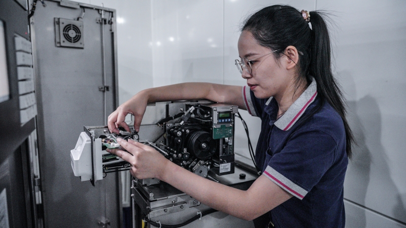 从检修工成长为工班长、工程师,她是冲锋在票务检修阵线的地铁“女兵”。长沙市“五一劳动奖章”、长沙市“青年岗位能手”、长沙市总工会“优秀工匠”……诸多荣誉都诠释着她锐意进取的地铁工匠精神。她是长沙地铁2号线AFC(Automatic Fare Collection自动售检票系统)一车间工程师皮叶子。