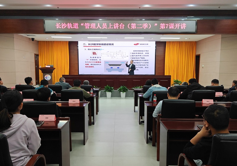 5月11日上午,“管理人员上讲台(第二季)”第七课——《长沙磁浮快线的创新和发展》在公司26楼会议室开讲。课程由磁浮公司技术部部长杨勇主讲,来自各部门、中心、子分公司共计80余人参加培训。