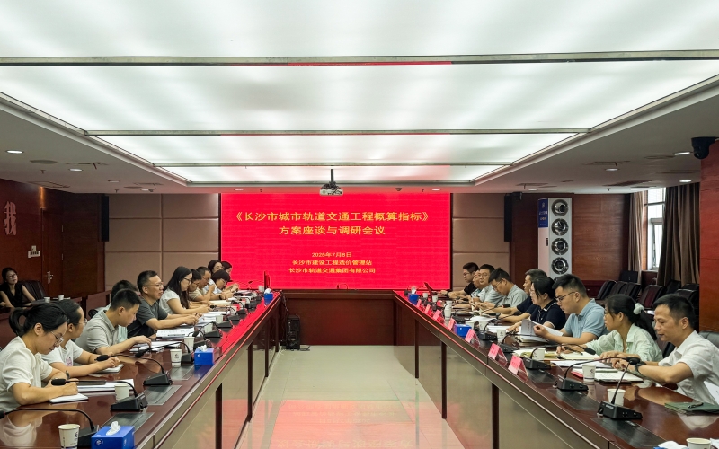 7月8日,长沙市城市轨道交通工程概算指标编制工作调研会在公司顺利召开。会议由市造价站副站长胡鹏飞主持,市造价站、市财评中心、长沙市规划院、中国铁路设计集团、长沙轨道等单位相关同志参加。