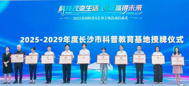 近日,2025年全国科普月长沙主场活动在湖南湘江新区城市馆成功举办。启动仪式上,发布了科普月重点活动及新认定的30家市级科普教育基地名单,湖南磁浮公司等10家单位作为“2025-2029年度长沙市科普教育基地”代表接受授牌。