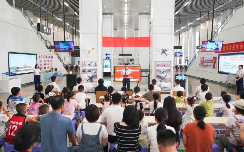 在现场体验环节,小朋友们自己动手完成磁浮车模制作,观看电磁科普秀,通过电磁物理实验、物理现象演示等,感知电磁世界的无限魅力,激发对科学的探索欲望。小朋友们还化身空乘小可爱,参观打卡长沙磁浮城市航站楼,亲身体验航班查询、值机办理、行李托运等一系列飞行前作业流程,切实感受空铁联运、无忧出行的便捷。随后,小朋友们乘坐从磁浮高铁站开出的长沙磁浮快线科普列车,充分感受140km/h的运行速度及电磁技术应用场景,并在磁浮列车上阅览沿途的美丽风景。