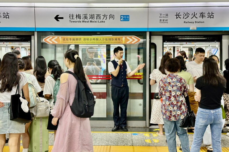 假期市民游客出行集中,长沙地铁将对长沙火车南站、长沙火车站等交通枢纽站点及橘子洲、五一广场等景区、商圈周边站点增派人手,值守闸机、扶梯等关键客服设备,并为有需要的乘客提供线路指引、出行答疑等服务。线网控制中心将密切关注各线路运行状态,如遇突发大客流等情况将及时组织备用列车上线,灵活调整运力以满足市民出行需求。