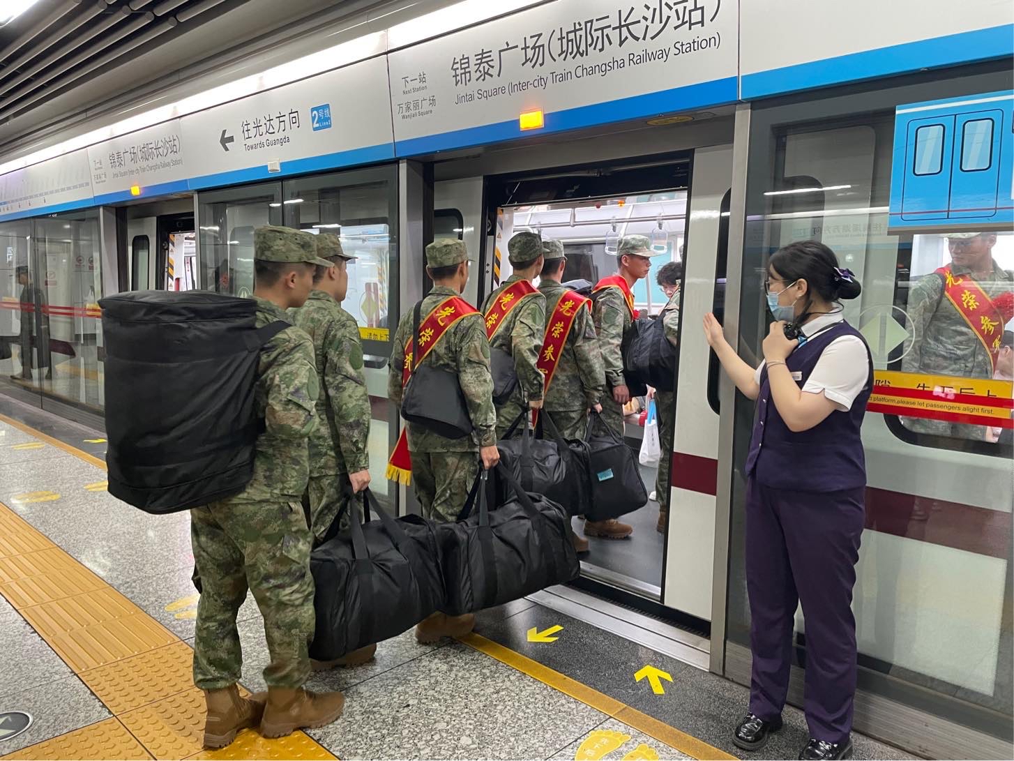 为更好保证新兵运输组织工作安全有序进行,长沙地铁提前部署,在主要途径站点长沙火车站、锦泰广场站、长沙火车南站,制定专项客运组织方案并安排专人引导,各站点开辟绿色通道,组织新兵们优先进站、乘车,最大限度为新兵运输提供便利。