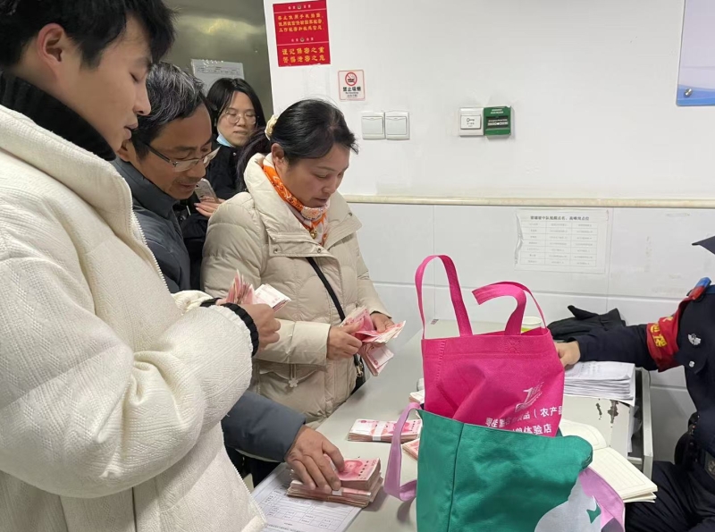 11:05,失主赵先生一家从遗落现金的金星路站赶到梅溪湖西站警务室,与车站工作人员共同对现金进行逐一清点。确认金额无误后,值班站长文理达将袋子完好交还到赵先生一家手中,并提醒他们以后出门注意保管好财物。