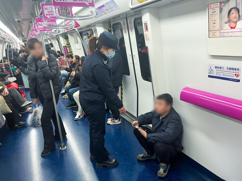 车厢巡逻也是执法队员日常工作的一部分,通过每日跟车巡查,持续纠治车厢内乱扔乱吐、违规占座、手机噪音、饮食、乞讨等不文明行为。但文明、和谐的车厢环境需要每一位乘客的积极参与和共同努力,长沙地铁在此诚心呼吁所有市民乘客,争当文明出行的践行者和传播者,用实际行动影响和带动周围人,杜绝公共交通出行陋习。如遇各类不文明行为,欢迎拨打地铁执法报案电话0731-86852110,携手共创文明地铁。