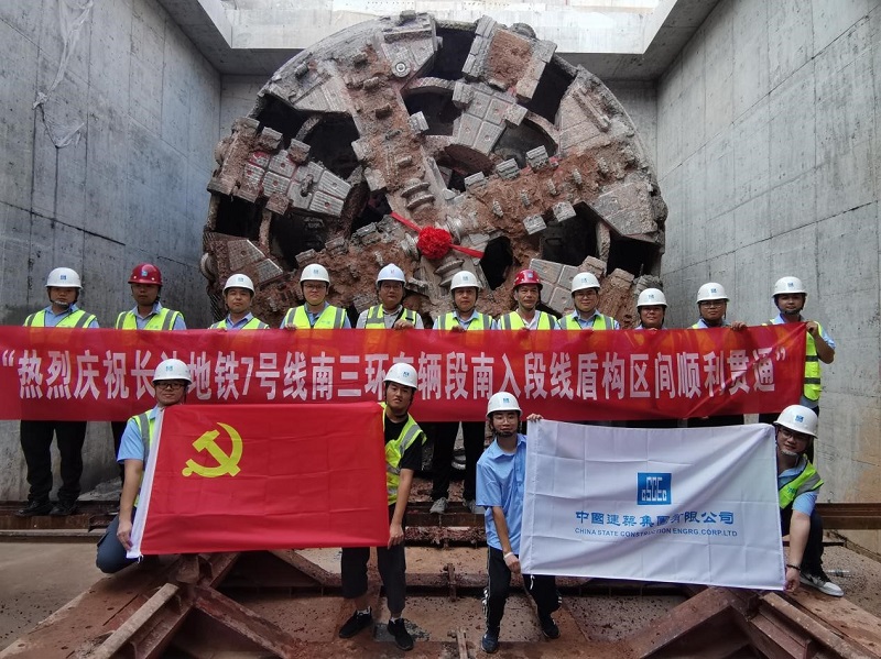 9月10日,长沙地铁7号线一期工程 “韶山2号”盾构机刀盘从南三环车辆段接收端顺利破壁而出,标志着7号线一期工程南三环车辆段南入段线顺利贯通,这也是7号线一期工程首条盾构区间贯通。