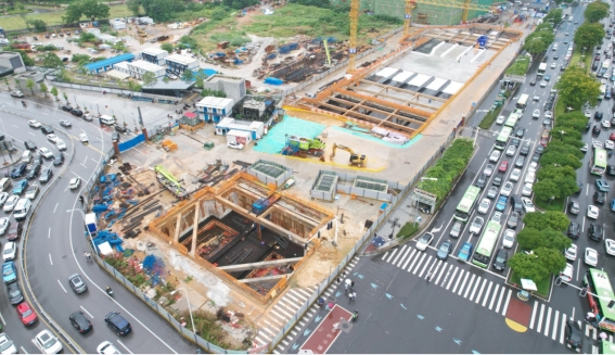 与标准地铁站不同的是,砂子塘站主体结构跨度更大,基坑土方开挖卸载、施工扰动易造成围护结构体系变形,因此在开挖过程中需时刻注意对周边既有线路4号线的扰动及对在建项目工人文化宫的施工影响。为此,长沙轨道以“支部建在项目上”为抓手,通过党建引领全力推进项目建设,将党的领导贯穿项目发展的全过程各方面,筑牢“红色堡垒”,推动党建工作和生产经营深度融合,持续发挥党员模范先锋作用,确保了砂子塘站顺利封顶,项目建设顺利推进。