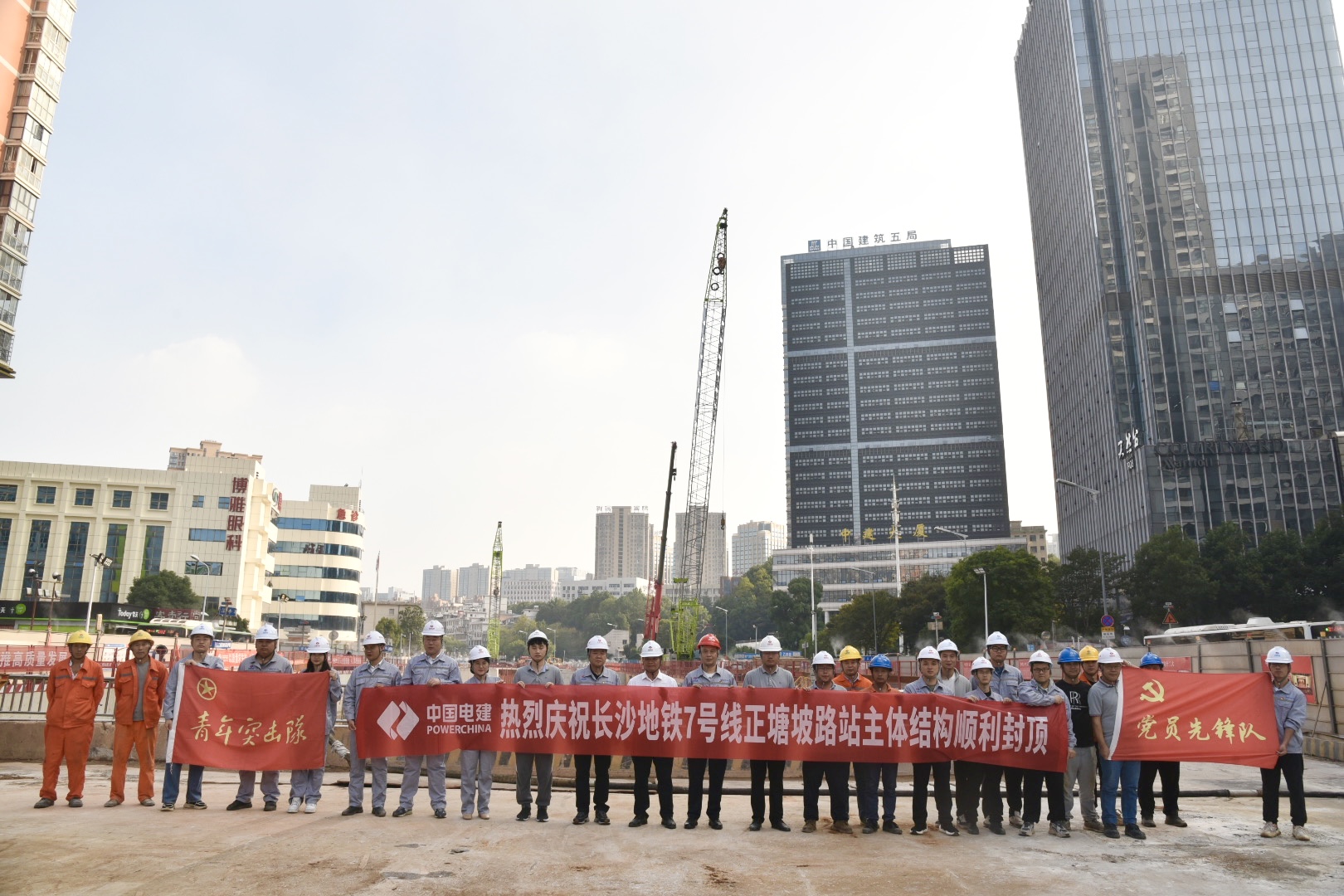 10月30日下午,随着最后一仓混凝土浇筑完成,标志着长沙地铁7号线正塘坡路站主体结构封顶。正塘坡路站是长沙地铁7号线第6个封顶的车站,车站位于韶山路和正塘坡路交叉路口,沿韶山路南北向敷设,为地下两层12米岛式站台车站,总长240米,标准段宽度为21.1米,由于车站周边环境复杂,管线迁改产权涉及单位多,交通疏解任务重,对工程推进带来困难。