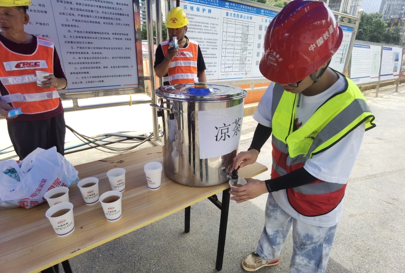 今年入伏以来,长沙持续高温酷暑天气给轨道建设带来了严峻考验。为尽全力给建设者们创造良好的工作和休息环境,长沙轨道建设公司严格实行“抓两头、歇中间”的避高温措施,适当调整作业、休息时间,合理安排工序和工作量,避免高温时段室外作业。施工现场配备足够的防暑降温用品和药品,定期供应凉茶、绿豆汤等清凉饮品,及时开展夏送清凉活动,为建设者们提供各类保障。同时,各在建工地还举办了防暑降温知识讲座或安全培训教育宣传,以提高建设者们自我保护意识和应急处理能力。