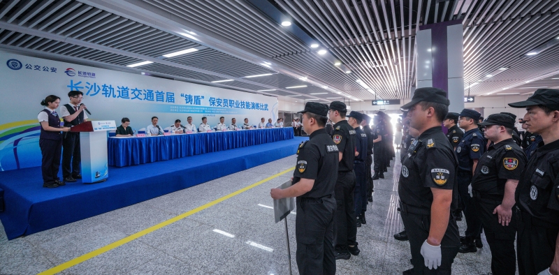 6月30日,长沙轨道交通首届“铸盾”保安员职业技能演练比武成功举办。湖南省公安厅巡特警及治安防控支队、长沙市公安局公共交通治安管理分局、长沙市轨道交通集团有限公司以及中国人保财险长沙分公司相关领导出席并观摩技能比武。